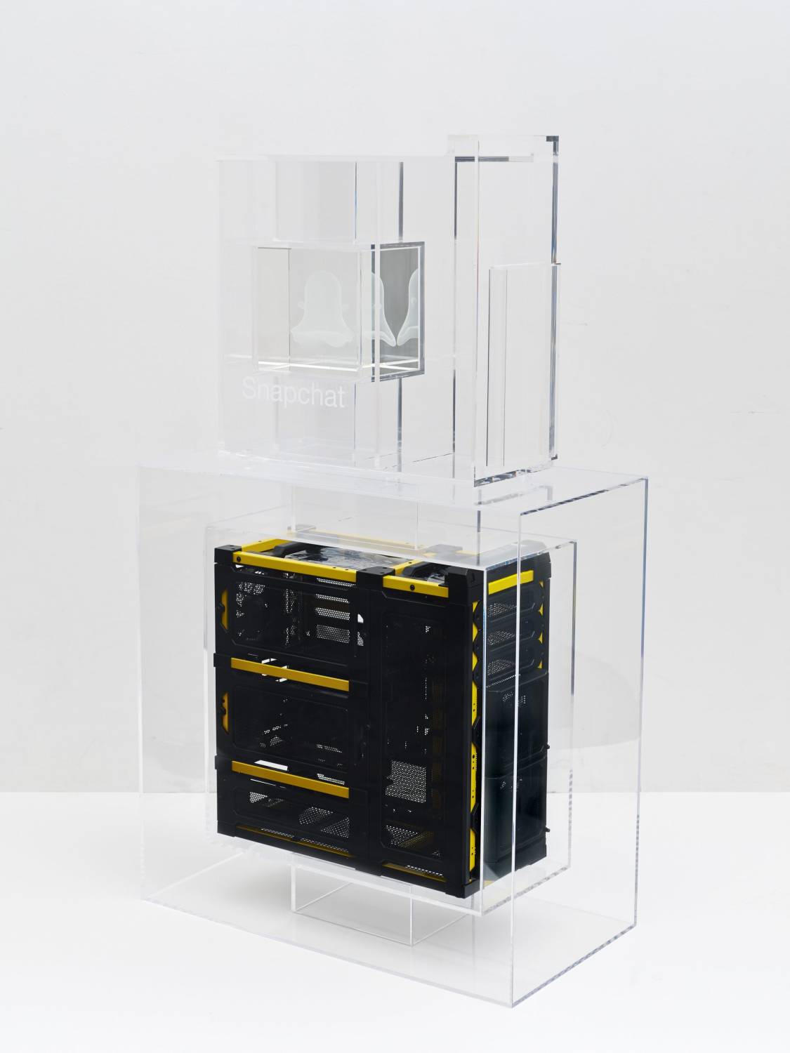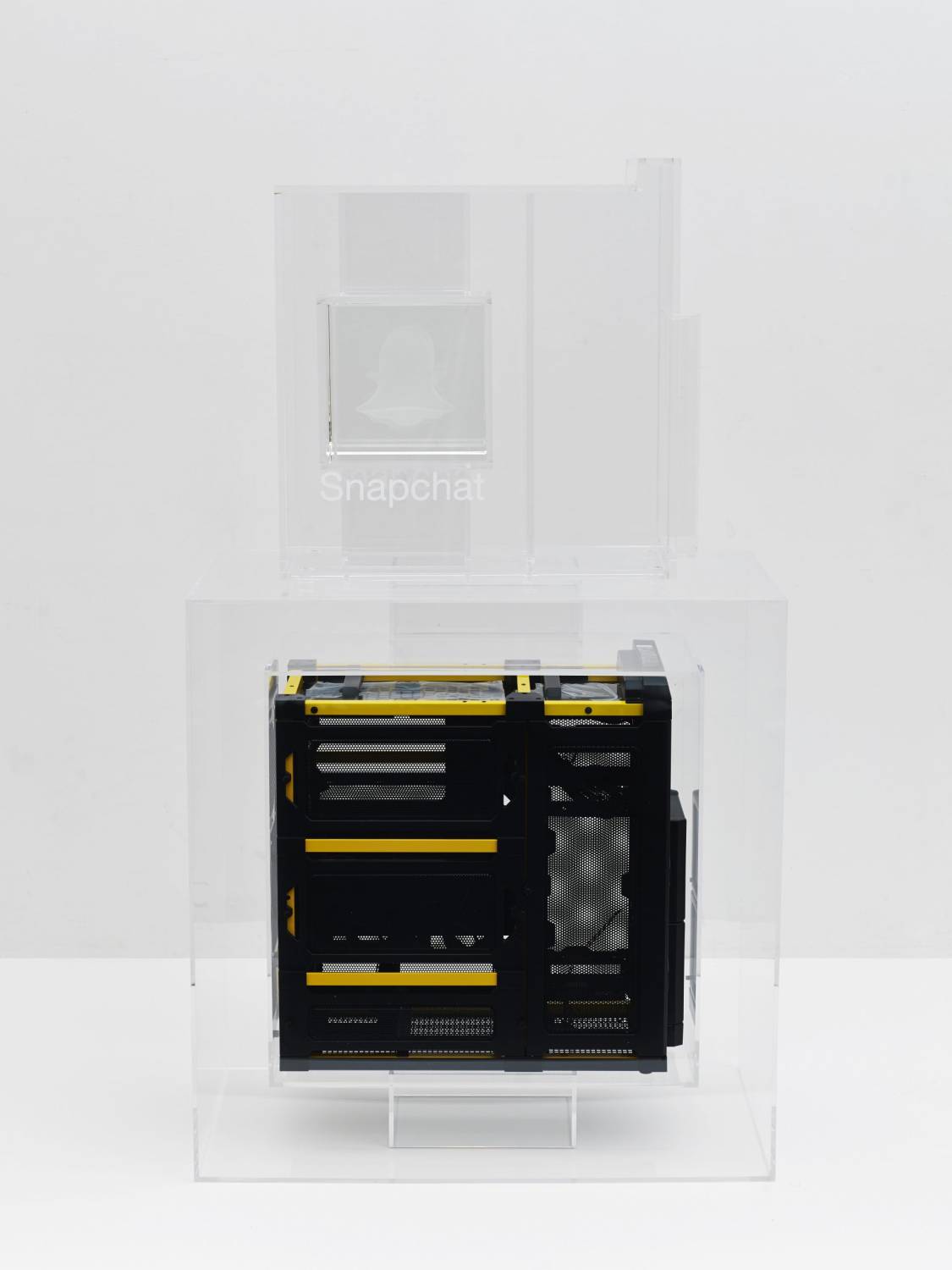 Berlin Startup Case Mod: Snapchat;2014; Antec Lan Boy Air Midi-Tower photo copy case, engraved custom plexiglas boxes, 3d laser photo in glass: 126×72×38cm.