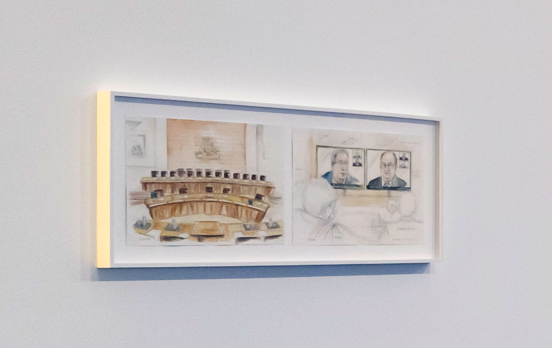 Speculative accountability trial courtroom sketch: Federal Court of Australia, Australian Securities and Investments Commission v Rio Tinto Limited [2020] FCA 1721;2021; Water colour on paper: 97×40cm.