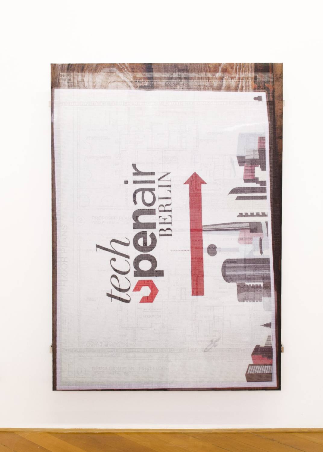 Tech openair Berlin Zuckerberg first floor; 2014; 2 digital prints on billboard mesh, digital prints on aluminum: 159,5×113,5×17,5cm.